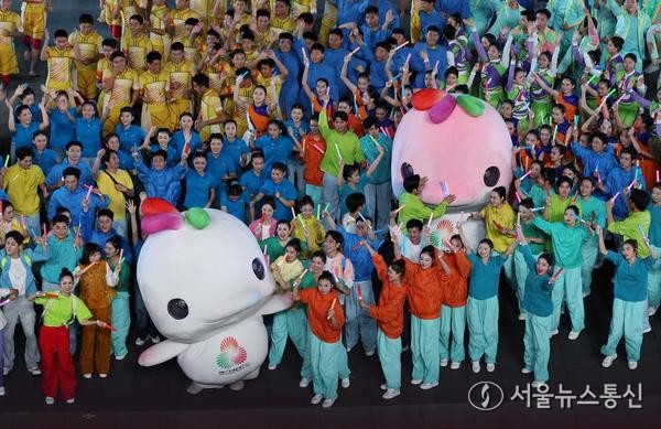 (사진=신화통신 제공) 【서울 = 신화/서울뉴스통신】 권나영 기자 = 21일 중국의 '제15회 전국운동회' 폐막식에 등장한 전국운동회 마스코트 '시양양(喜洋洋)'과 '러룽룽(樂融融)'. 이날 '제15회 전국운동회' 폐막식이 광둥(廣東)성 선전(深圳)에 위치한 첸하이(前海)환러(歡樂)극장에서 열렸다.