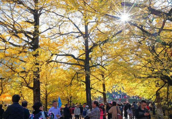 (사진=신화통신 제공) 【서울 = 신화/서울뉴스통신】 권나영 기자 = 최근 후난(湖南)성 융저우(永州)시 솽파이(雙牌)현의 은행나무 3천여 그루가 황금색으로 물들며 수많은 관광객을 끌어들이고 있다. 솽파이현은 최근 수년간 '은행(銀杏) 경제'를 적극 추진하는 등 특색 있는 관광 프로젝트를 발전시켜 지역 주민들의 소득 증대를 이끌고 있다. 관광객들이 23일 솽파이현 퉁쯔아오(桐子坳)촌에서 노랗게 물든 은행나무를 감상하고 있다.