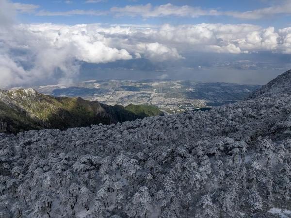 (사진=신화통신 제공) 【서울 = 신화/서울뉴스통신】 권나영 기자 = 찬 공기의 영향으로 윈난(雲南)성 다리(大理)시 창산(蒼山)에 올겨울 첫눈이 내렸다. 은빛으로 물든 숲과 얼하이(洱海), 고성이 어우러져 한 폭의 그림 같은 풍경이 연출됐다. 24일 첫눈이 내린 창산과 얼하이를 드론에 담았다.