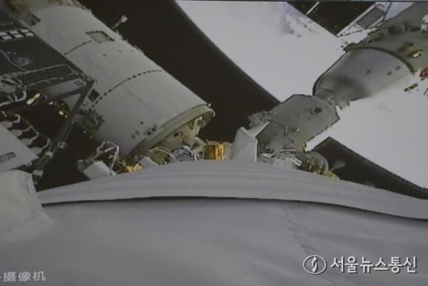 (사진=신화통신 제공) 【서울 = 신화/서울뉴스통신】 권나영 기자 = 선저우(神舟) 22호 우주선과 우주정거장 조합체가 도킹에 성공하는 실시간 화면을 25일 베이징우주통제센터(BACC)에서 촬영했다. 중국유인우주공정판공실(CMSEO)에 따르면 선저우 22호 우주선이 궤도 진입 후 상태 설정을 순조롭게 마치고 이날 오후 3시 50분 우주정거장 톈허(天和) 핵심 모듈 전방 포트에 성공적으로 도킹했다.
