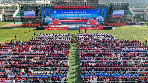 (사진=신화통신 제공) 【서울 = 신화/서울뉴스통신】 권나영 기자 = 25일 윈난(雲南)성 쿤밍(昆明)시 루취안(祿勸) 이(彝)족먀오(苗)족자치현 성립 40주년 경축대회가 루취안현 경기장에서 열렸다. 이날 루취안 이족먀오족자치현 성립 40주년 경축대회 현장.